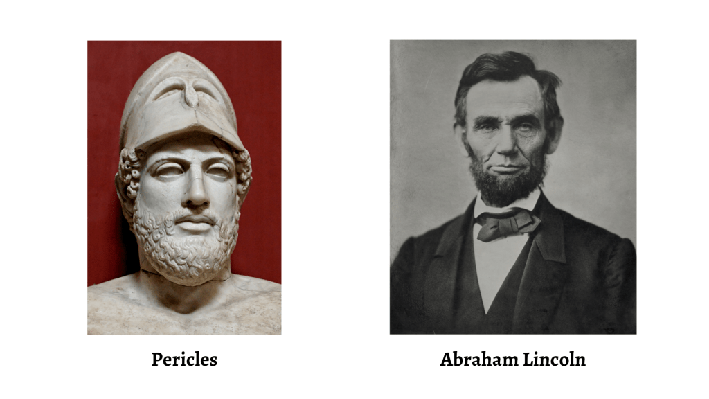 When teaching Pericles’ Funeral Oration, I like to play Abraham Lincoln’s Gettysburg Address (from the movie Saving Lincoln) as a comparison, through which I incorporate visual and auditory components into class.